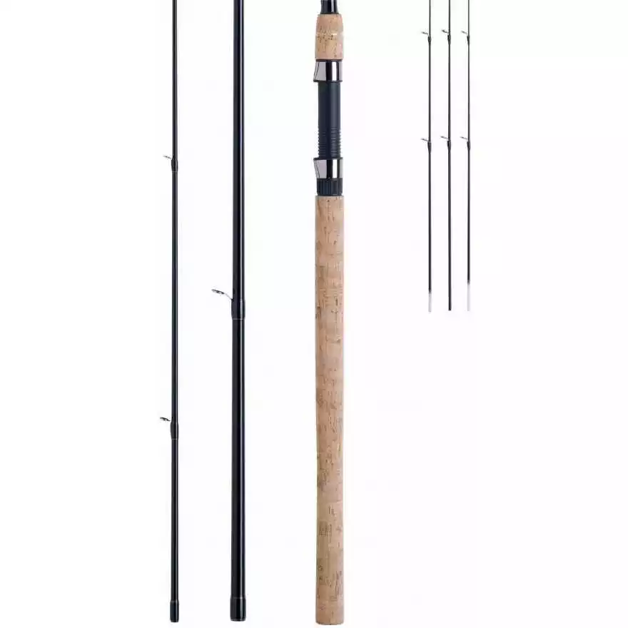 Eine gut ausbalancierte Feederrute, ideal geeignet zum Fischen mit schweren Futterkörben in Fließgewässern. Die Beringung ist so groß gewählt, dass auch problemlos mit Schlagschnur gefischt werden kann. Auch bei leichteren Futterkörben laden sich die Ruten sehr gut auf, um mit wenig Kraftaufwand große Wurfweiten erzielen zu können.